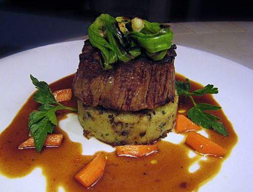 10 oz. Angus served with garden vegetables and potato au gratin, flambé cognac sauce.